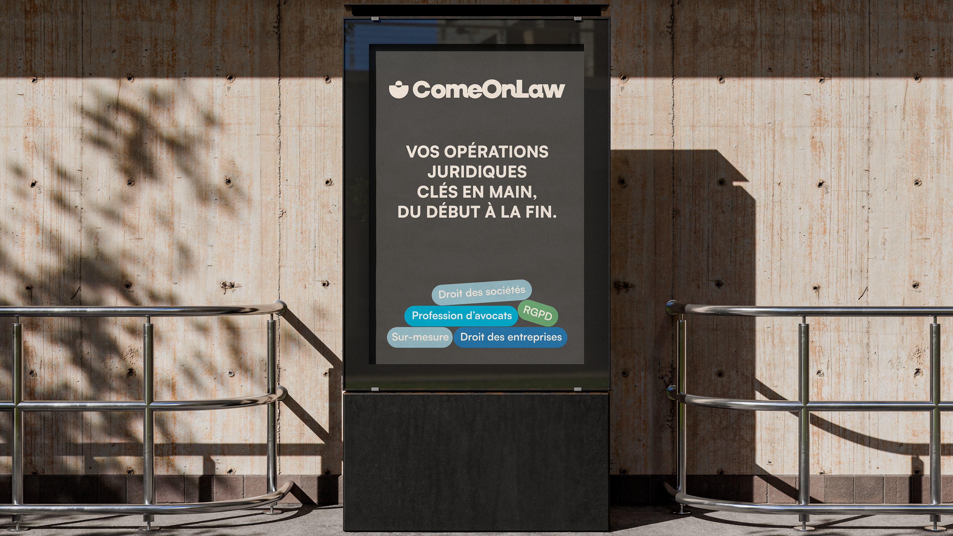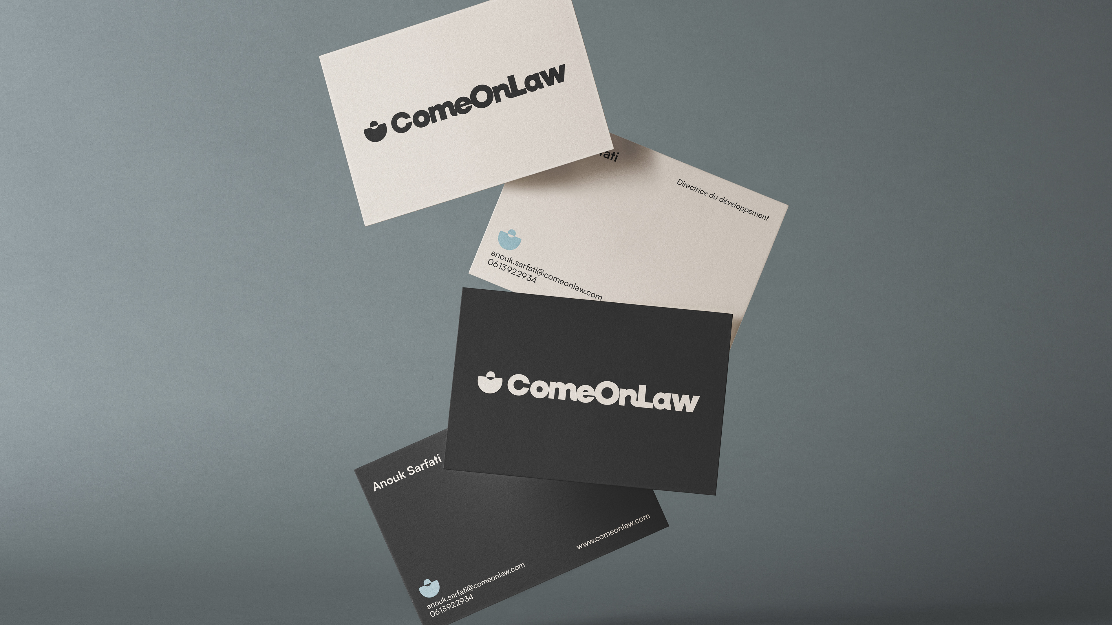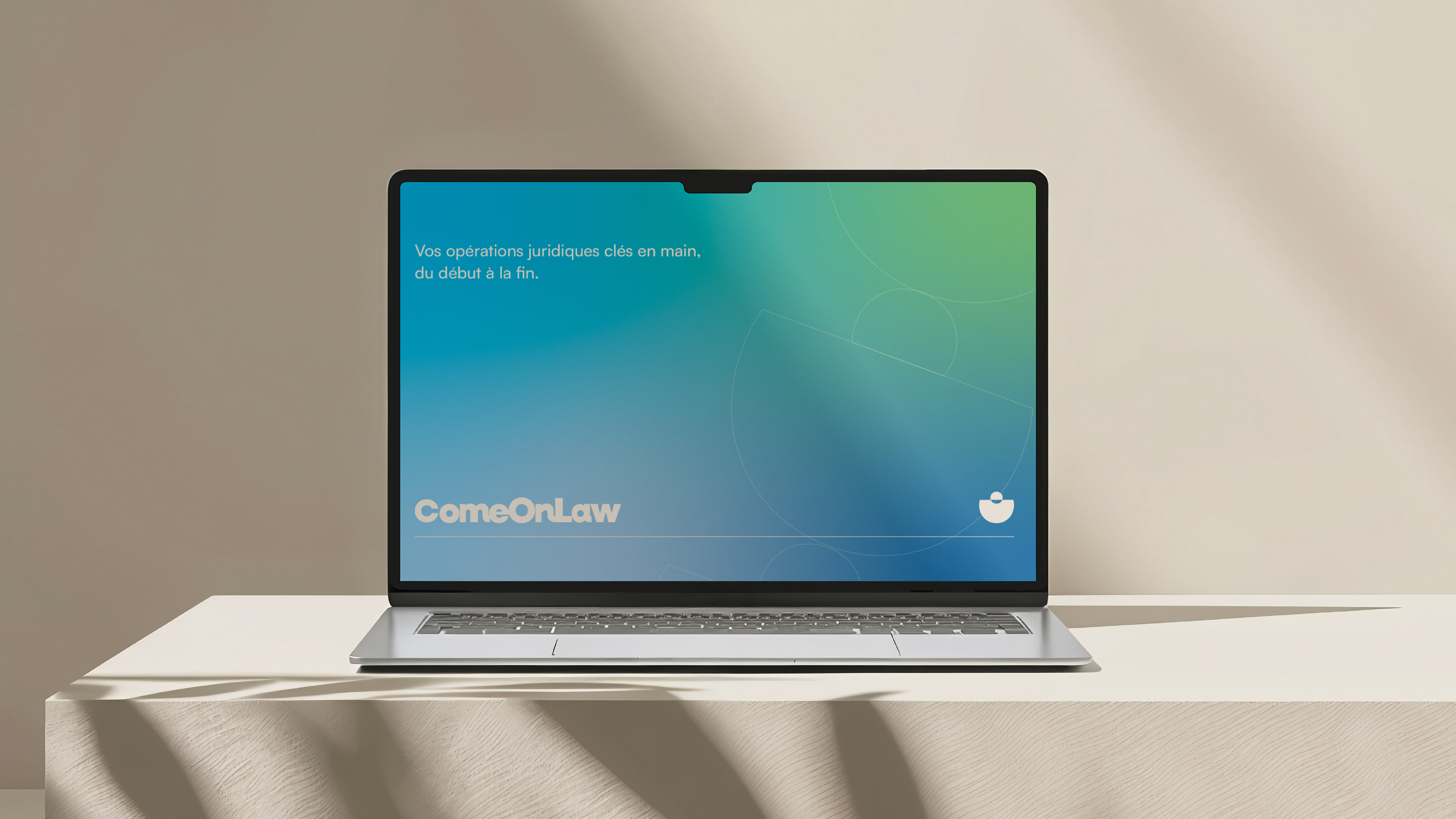 Conception d’une identité visuelle pour Come On Law ,une legaltech qui simplifie et optimise la gestion juridique des entreprises et des cabinets d’avocats.